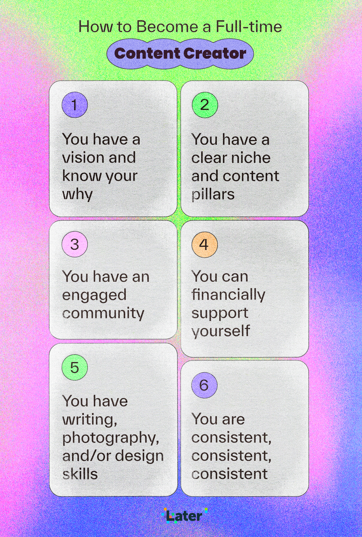 The Later blog logs over 1 million sessions per month. As part of our collaboration, we redesigned the art direction for the share images that accompany each daily article across various channels.